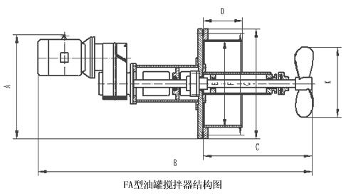 側(cè)向伸入式攪拌機(jī)是由儲(chǔ)罐的側(cè)壁伸入罐內(nèi),它通過(guò)法蘭蓋與罐體的開(kāi)口法蘭相聯(lián)結(jié)。攪拌機(jī)的槳葉為船用螺旋槳型。由于螺旋槳的轉(zhuǎn)動(dòng),使罐內(nèi)液體產(chǎn)生兩個(gè)方向的運(yùn)動(dòng),一個(gè)沿著螺旋槳軸線方向向前運(yùn)動(dòng),另一個(gè)沿螺旋槳圓周方向的運(yùn)動(dòng)。軸線方向的運(yùn)動(dòng),由于受到罐壁的阻礙而使罐內(nèi)液體沿著罐壁作圓周方向的運(yùn)動(dòng),而液體沿螺旋槳圓周方向的運(yùn)動(dòng),就使罐內(nèi)液體上下翻動(dòng),這樣就使罐內(nèi)液體得到攪拌,并可防止罐內(nèi)沉積物的堆積。