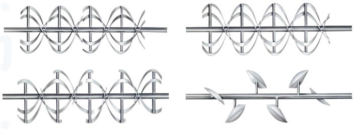 HTM型螺條式混合機結構如圖所示,它有傳動部件、筒體、筒蓋、特殊布置的螺條主軸、出料閥等組成。